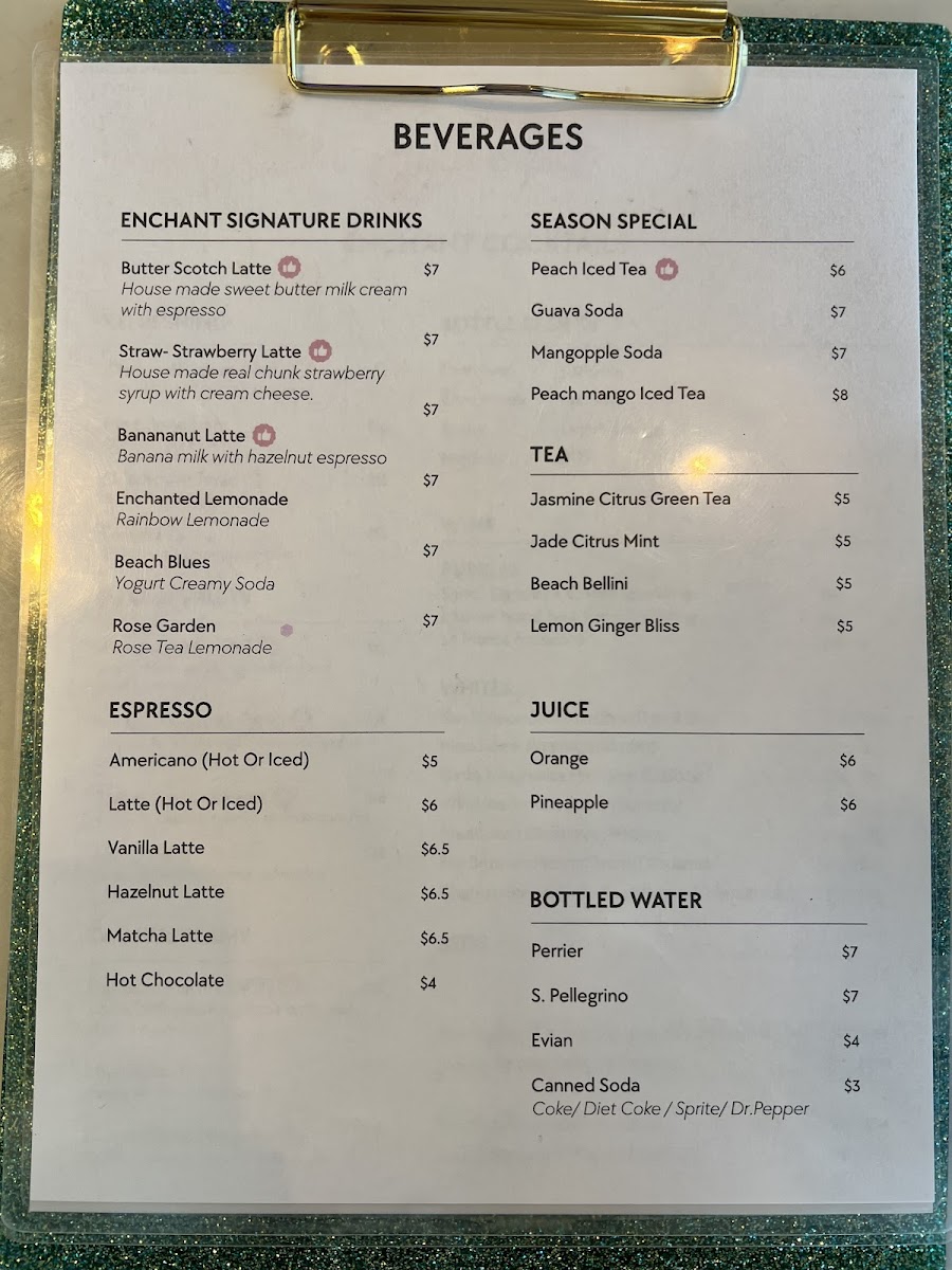 For a refreshing beverage, try one of their flavorful teas or a creative cocktail like the Magic Castle. Whether you're celebrating a special occasion or enjoying a casual meal, Enchant LA promises an enchanting culinary experience in a charming setting.