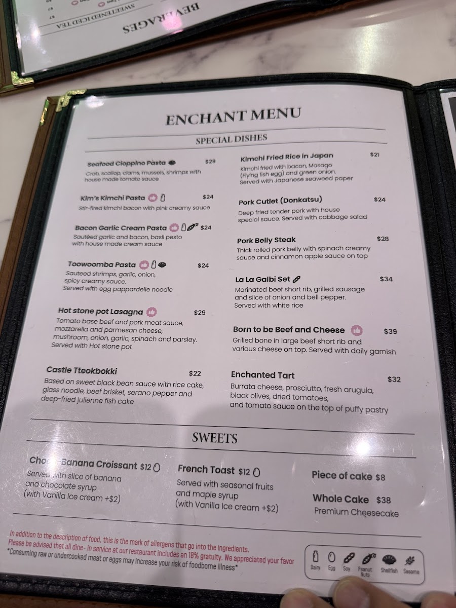 Enchant LA's menu is a delightful blend of flavors, featuring standout dishes like the seafood pasta, bursting with fresh ingredients, and the beloved kimchi pasta, renowned for its rich, well-balanced flavors. Diners rave about the generous portions of the burrata salad, loaded with sweet tomatoes, and the succulent bulgogi quesadilla.